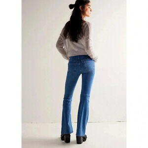 NWT Free People Penny Pull On Flare Jeans Stretch Mid Rise We The Free Blue