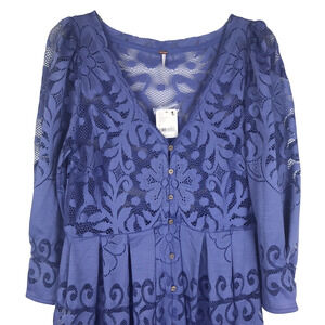 NWT Free People Persian Jewel Blue Lace Midi Dress Button 3/4 Sleeve Women's Size Small FLAW
