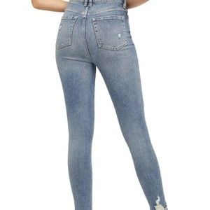 Website description: A super-high waist tops these slim faded jeans ripped down the front for an instant lived-in vibe that'll go with so much in your closet and your plans