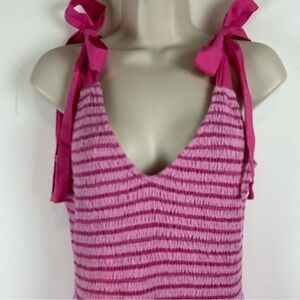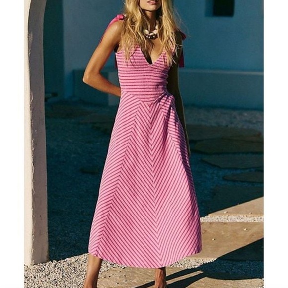 NWT Free People Pink Smocked Midi Dress with Tie-Straps sz M Coquette Boho Girly