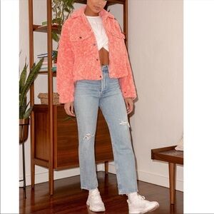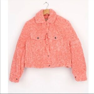 NWT Free People Pink Teddy Cropped Jacket Size Small