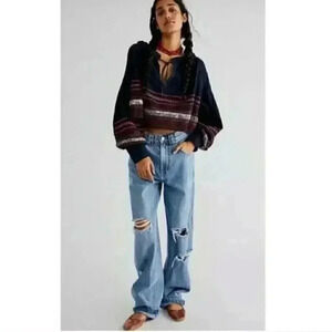 NWT - Free People Poppy Embroidered Indigo Crop Top SIZE: M