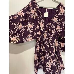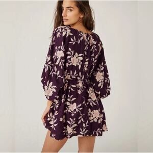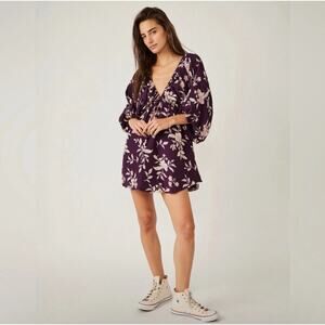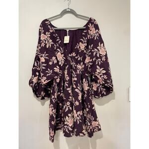 NWT Free People Portia Floral V-Neck Mini Babydoll Dress Mulberry Women's Size L