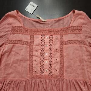 NWT Free People Pretty Please Lace Tunic Top Rosetta Pink Size Medium