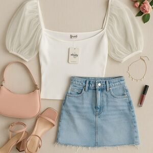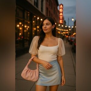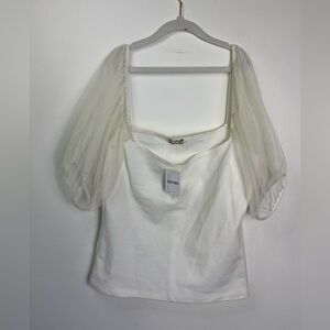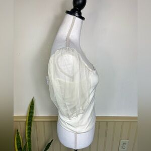 New with tags from Free People’s Intimately line, this soft and feminine ivory top is the perfect blend of romantic and modern. With sheer puff sleeves, a flattering square neckline, and a slim-fit cotton blend body, it’s ideal for dressing up or down.