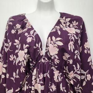 NWT Free People Purple Floral 3/4 Sleeve Portia Printed Boho Mini Dress Women M