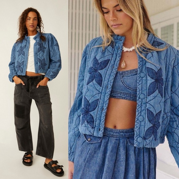 NWT Free People Quinn Quilted Jacket Denim Chambray