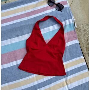 Turn heads this summer in this stunning Free People halter crop top in a bold, vibrant red. With a plunging neckline and wide halter straps, this top delivers the perfect blend of retro Y2K vibes and modern edge. Made with stretchy, high-quality fabric for a flattering and secure fit.