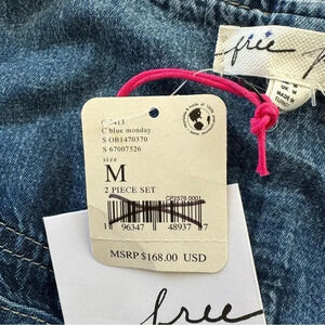 NWT Free People Rider Denim Vest Suit Pants Matching Set Jean Two Piece Blue