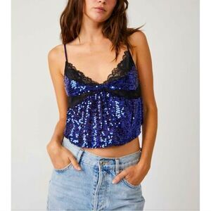NWT Free People Right Rhythm Sequin Cami / Midnight Combo