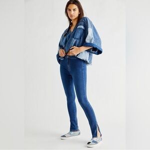 NWT Free People Riley High-Rise Slit Jeans in Nightshade Blue size 27