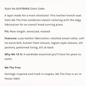 A layer made for a main character: This leather trench coat from We The Free combines classic tailoring with the edgy fabrication for an overall head-turning piece.