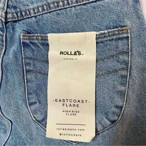 NWT Free People Rollas East Coast Flare Jeans High Rise in Byron Blue Rips 26