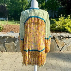 NWT Free People Rosebud Mix Print Long Sleeve Floral Mini Dress Yellow Small