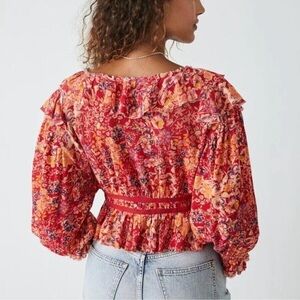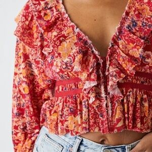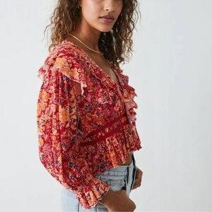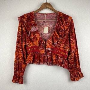 NWT Free People Rudi Ruffle Top in Cherry Combo Size Small