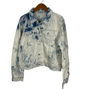 NWT Free People Rumors Jones Tie Dye Blue Denim Jacket Large