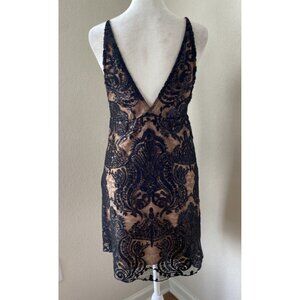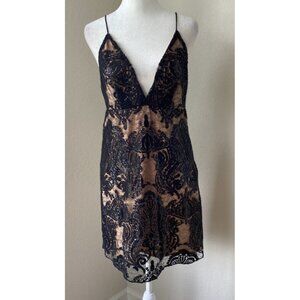 NWT Free People SZ 2 Nude w Black Lace Sequin Mini Dress Evening Party Strapless.
