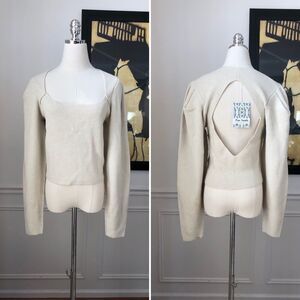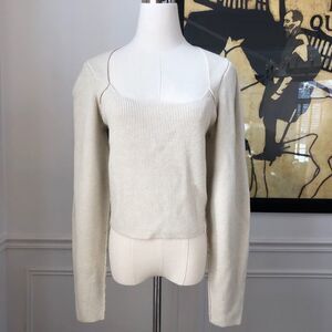 - 22" length- Square neck - Long sleeves - Open back - Raw-edge details - 52% viscose, 28% polyester, 20% nylon - Hand wash, dry flat