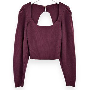 NWT Free People Saffron Plum Purple Open Back Cutout Scoop Neck Rib Knit Sweater