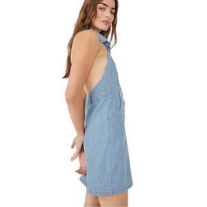NWT Free People Sami Mini Dress Denim Blue Dress Halter Open Back Button Down L