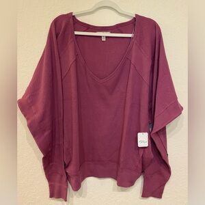 NWT Free People Santa Clara Thermal Slouchy Oversized V-neck Top Size M