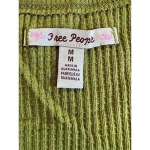 NWT Free People Santa Clara Thermal Waffle Knit Cotton Top Size M Green Furngull