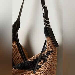 NWT Free People Santorini Straw Tote Bag Black Mix