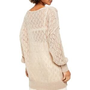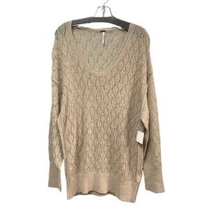 NWT Free People Say Hello Open Stitch Oversized Sweater Womens XS Taupe