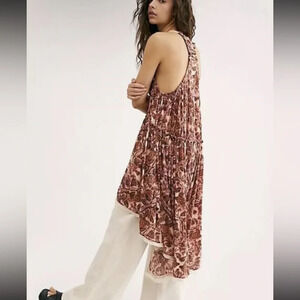 NWT Free People Sea Shell Printed Tunic Tank Top Ruffle