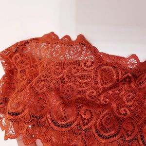 American made sheer crochet lace bandeau with scalloped trim and stretchy seamless back. Can be worn with lace in the front or the back.