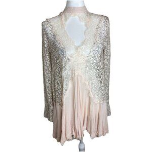 NWT Free People Secret Origins tell tale lace Tunic Retail $128 size S Pearl