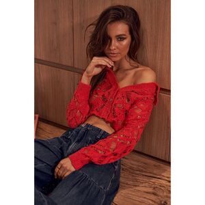 NWT Free People Sedona Open Knit Cropped Cardigan in Guava Berry, Size Small