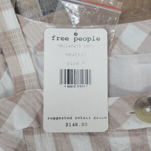 NWT Free People Seersucker Plaid Neutral Gingham Wide Leg Jumpsuit Womens 8