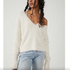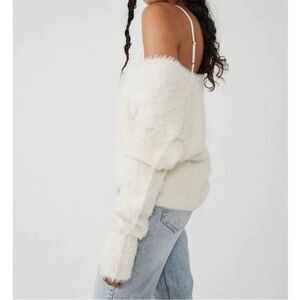 Fuzzy cozy v neck slouch luxury contemporary oversized