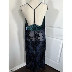 NWT Free People Sheer Velvet Slip Dress Navy And Emerald Large