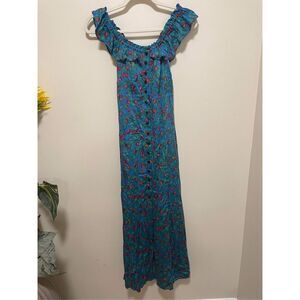 Turn heads in this timeless midi dress featured in a floral printed design and off-the-shoulder, button-front silhouette for added versatility.