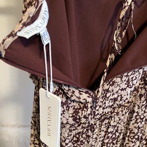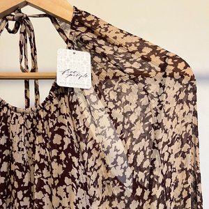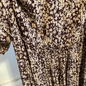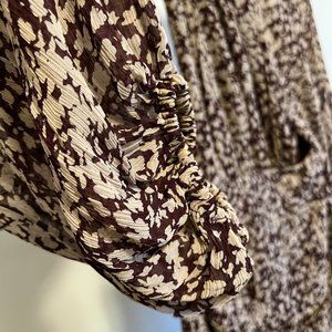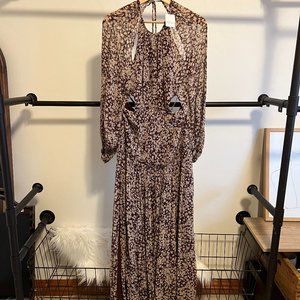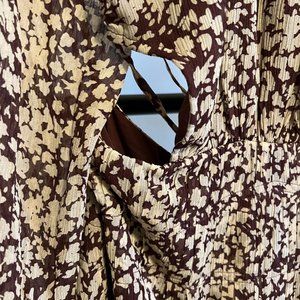 Printed to perfection, this forever essential midi dress is featured in a tiered, long sleeve silhouette with cutout detailing at sides and sheer sleeves for added dimension.