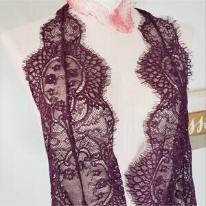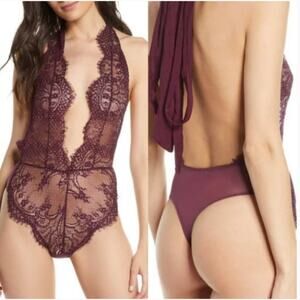 NWT Free People Show Off Fig Purple Sheer Lace Halter Bodysuit S