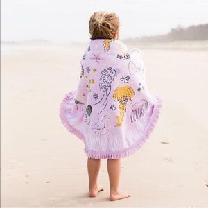 Perfect for little mermaids of all ages, our soft and super absorbent Sirene Petite Roundie features hand illustrated sea creatures to keep your little one's imagination running wild. Pink kids beach towel with pink tassels