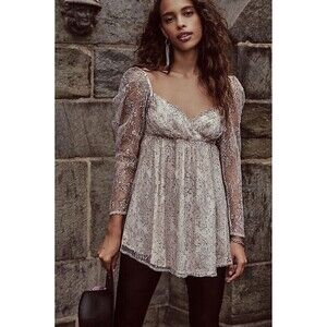 NWT Free People Size S Heavenly Lace In Champagne Toast Babydoll Dress Fairy