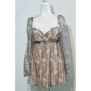 Elevate your wardrobe with this stunning Free People dress in a beautiful champagne color. The dress features a floral pattern and a sweetheart neckline, with long puff sleeves that add a touch of whimsy to the overall look. The dress is made of a blend of polyester, nylon, viscose, and cotton, and it is lined and smocked for added comfort and shape.