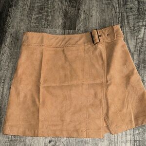 NWT Free People Skirt Camel Tan Faux Suede Ari Wrap Mini Buckle Vegan Boho 12