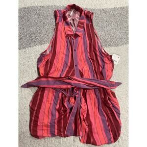 NWT Free People Mackenzie Wrap Button-Up Top. Colorful stripes with a classic button-down blouse. Sleeveless silhouette with adjustable sash at the waist.
