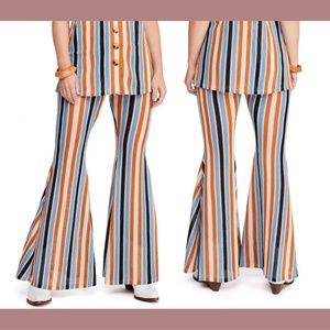 NWT Free People [ Small ] Bridget Stripe Flare PANTS ONLY in Mustard/Blue
