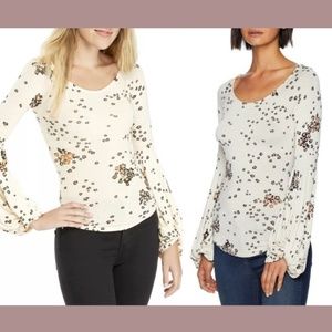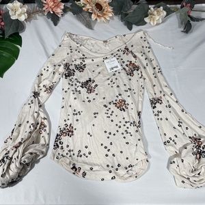 NWT Free People [ Small ] To The Tropics Blouson Sleeve Top in Tea Combo