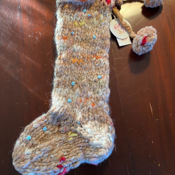 Adorbs Free People holiday stocking with glitter, toy roses and pops of color knit into the stocking. Plus two pom poms!