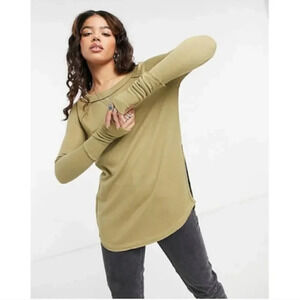 Free People Snowy Thermal Long Sleeve Shirt Top Olive Green