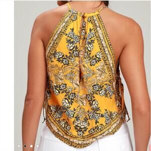 NWT Free People Sofia Poppy Gold Combo Halter Tank Top Size Medium