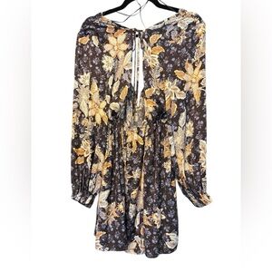 NWT Revolve Sold Out Free People Soli Mini Night Combo Silk Dress Long Sleeve Short Print Size Small - Tie closure in front and back - Has pockets - elastic waistband blouson sleeveves with elastic cuffs lightweight satin fabric - style number OB1500727 - revolve style numberWD2430