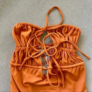 NWT Free People Solid & Striped The Paula One Piece Swimsuit Strapless Orange XS